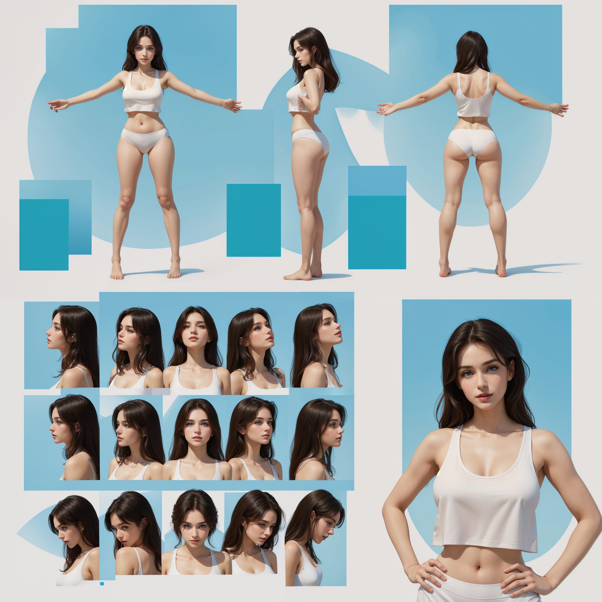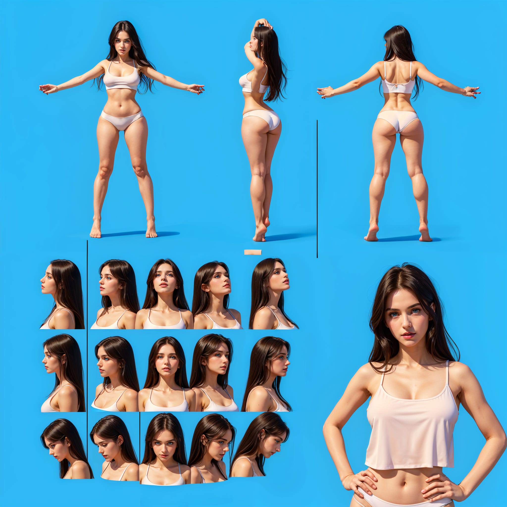 As we continue, it's clear that AI offers limitless variations in body type, hair, clothing (or, as we’ll see later, the lack thereof), and facial features. However, the usual AI challenges are present: malformed hands, color blotches, and missing details that will need restoration—but on which sheet?